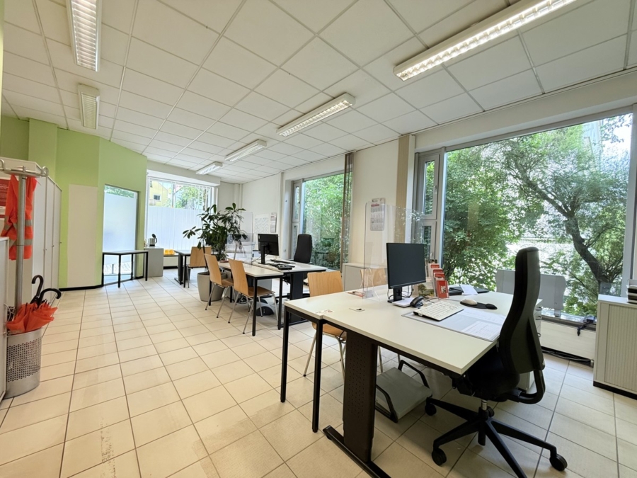 Die große Fensterfront sorgt nicht nur für viel Tageslicht, sondern auch für Sichtbarkeit in bester Lage. Der Grundriss ist flexibel gestaltbar: offen und kommunikativ oder unterteilt in mehrere Räume – ganz wie es Ihr Geschäftsmodell erfordert.