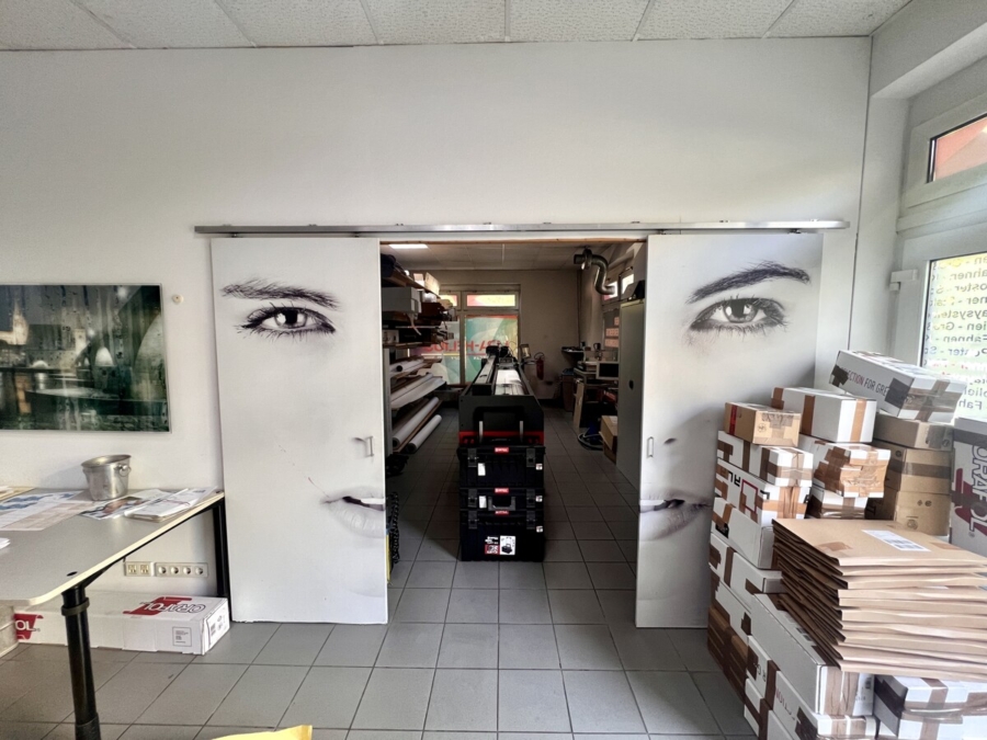 Derzeit wird die Immobilie von einer Digitaldruckerei genutzt, eignet sich jedoch ebenso hervorragend als repräsentatives Ladenlokal, Bürofläche für Dienstleister oder kombinierte Verkaufs- und Arbeitsfläche.