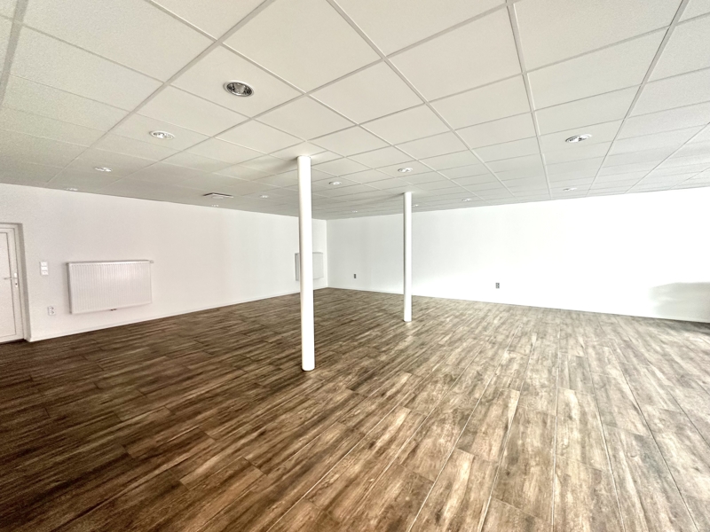 Alle Räume sind mit LED-Spots beleuchtet und verfügen über moderne Fliesenböden und eine Zwangsentlüftung. Zudem bieten die abgehängten Decken Spielraum für eine individuelle raum- und Lichtgestaltung. Ein WC ist ebenfalls vorhanden und Anschlüsse für eine Küche wurden installiert.
