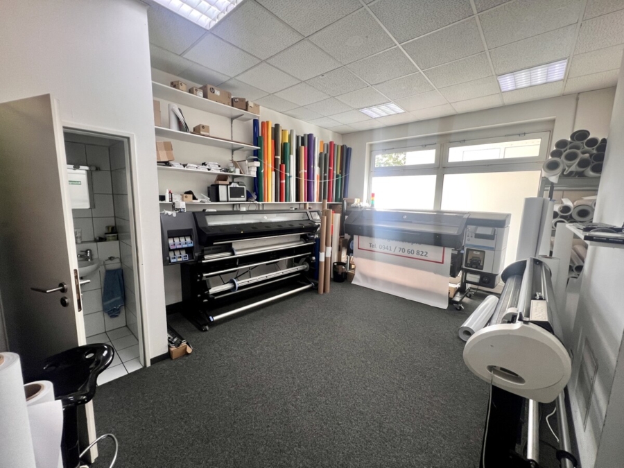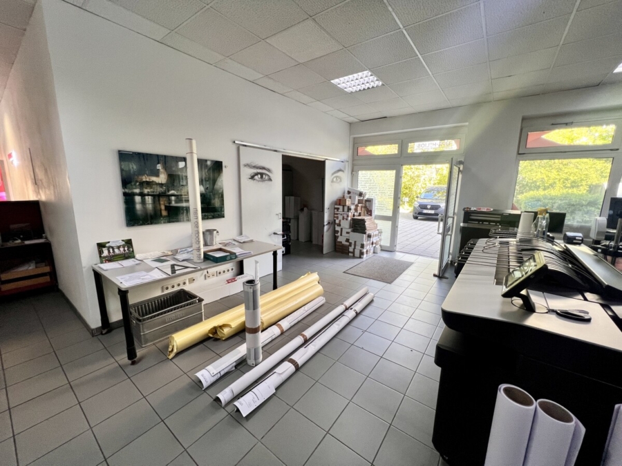 Derzeit wird die Immobilie von einer Digitaldruckerei genutzt, eignet sich jedoch ebenso hervorragend als repräsentatives Ladenlokal, Bürofläche für Dienstleister oder kombinierte Verkaufs- und Arbeitsfläche.