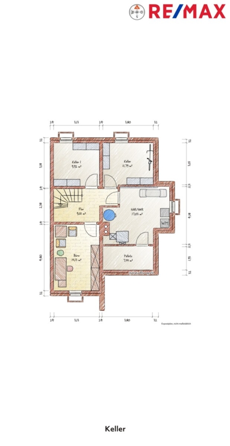 den Heizungsraum mit Pellet-Tankraum, den Waschraum sowie einen großen Kellerraum mit reichlich Stauraum.