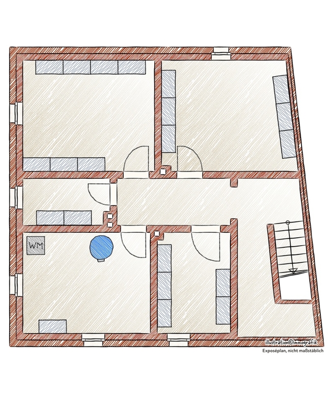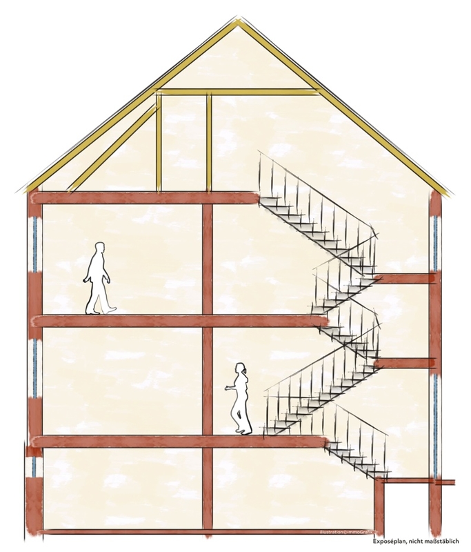 Im Dachgeschoss bestand damals noch Potential für den Ausbau, was in den späteren Jahren dann auch noch in sehr einfacher Ausführung gemacht wurde. Die Immobilie kann aber auch als Einfamilienhaus genutzt werden.
