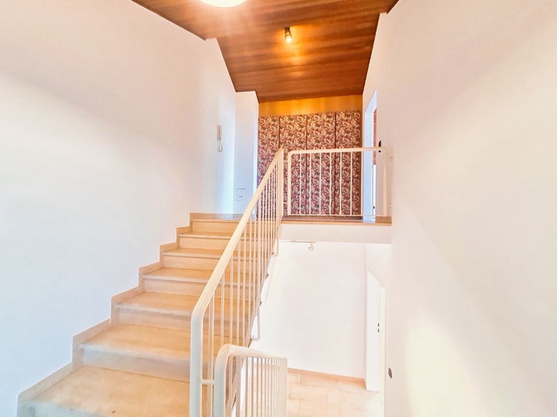 Am Boden finden Sie in den Dielen und den Treppenaufgängen im wesentlichen Naturstein sowie in den Wohn- und Schlafräumen Parkett beziehungsweise Laminat verlegt.
