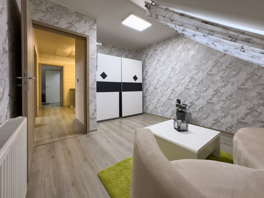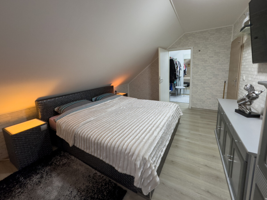 Im Dachgeschoss befinden sich das Hauptschlafzimmer mit Ankleidebereich, zwei "Kinderzimmer" sowie das erst 2022 hochwertig sanierte Badezimmer.