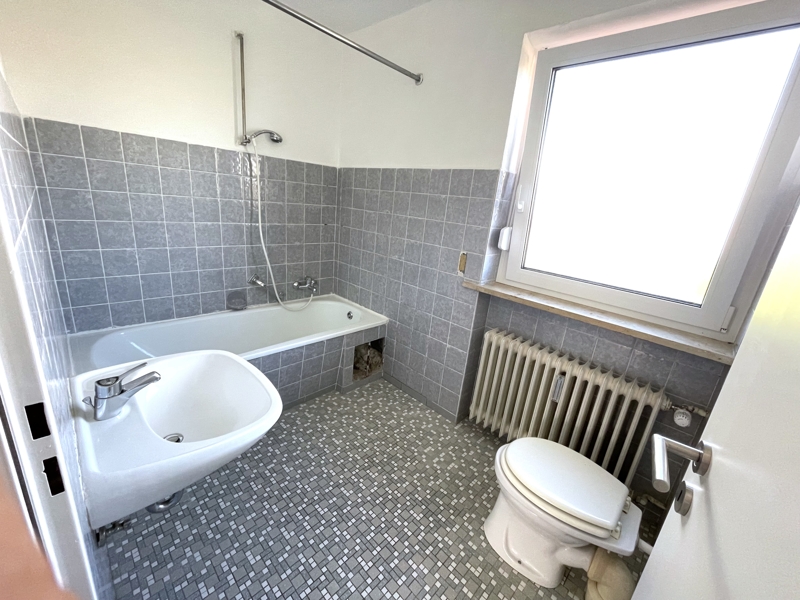 Das Badezimmer mit Wanne ist noch aus dem Jahr 1970 und Bedarf einer Renovierung.