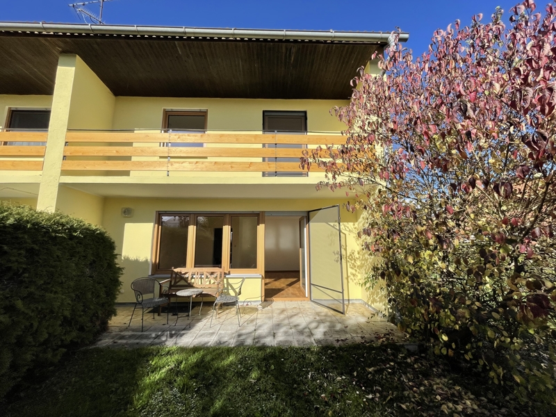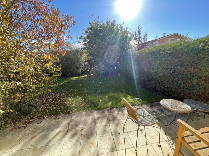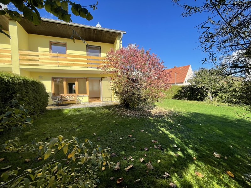 Auf Ihrer sonnigen Südterrasse, über welche sie vom Wohnzimmer auch direkt in den großzügigen Garten gelangen, können Sie entspannte Stunden genießen.