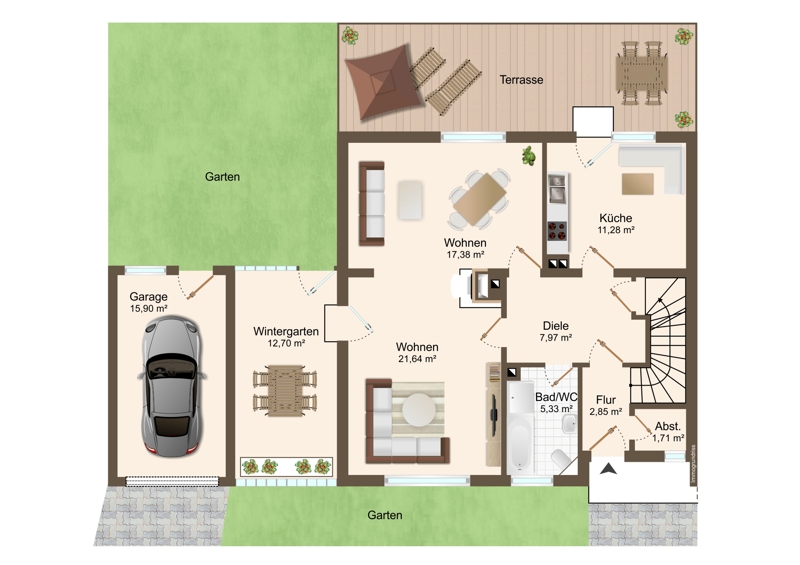 - abgetrenntes Treppenhaus