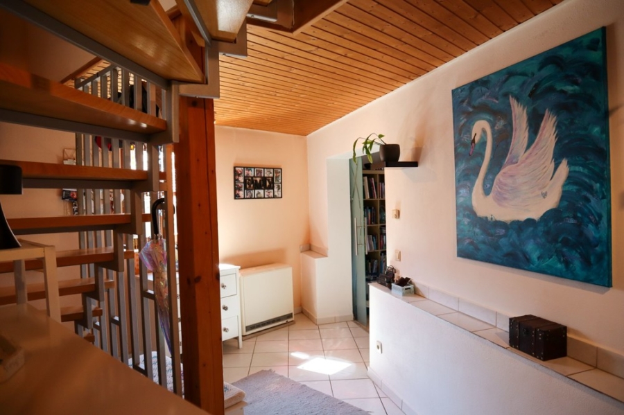 Über eine Innentreppe gelangen Sie in das 1997 entstandene Dachgeschoss. Diese bietet Ihnen weiteren Wohnraum in Form eines Studios, ein kleineres WC und natürlich die drei Schlafzimmer.