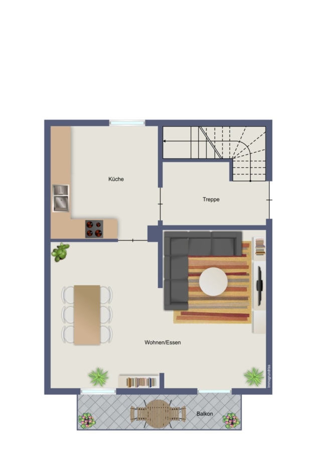 Das Obergeschoss bildet das Herzstück des Hauses. Hier sind die Küche sowie ein heller und freundlicher Wohnbereich untergebracht. Vom Wohnraum aus gelangen Sie direkt auf den Balkon, der einen freien Blick bietet und sich hervorragend eignet, um den Feierabend entspannt ausklingen zu lassen. Zusätzlich befindet sich auf dieser Ebene hinter dem Haus ein weiterer Freisitz. Dieser ist uneinsehbar gelegen und bietet Ihnen einen geschützten Rückzugsort im Freien – ideal für ruhige Stunden oder gesellige Abende.