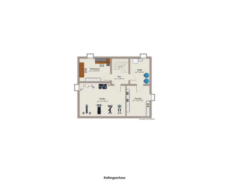 Treppab erwarten Sie in Ihrem Untergeschoss vier Kellerräume mit viel Platz für Dies und Das.