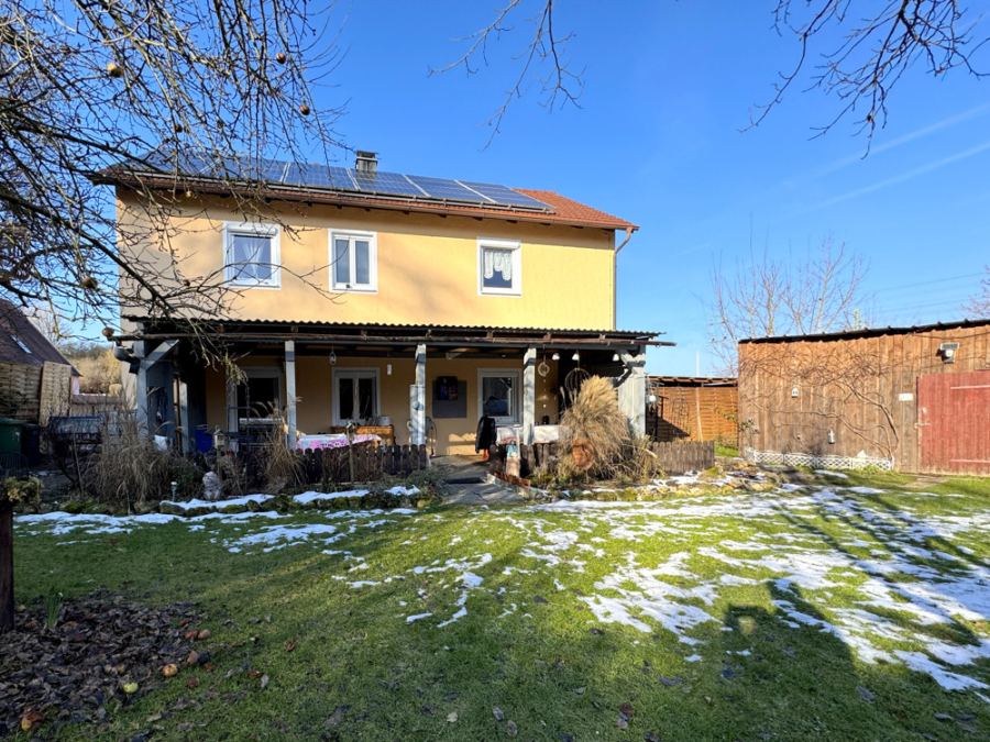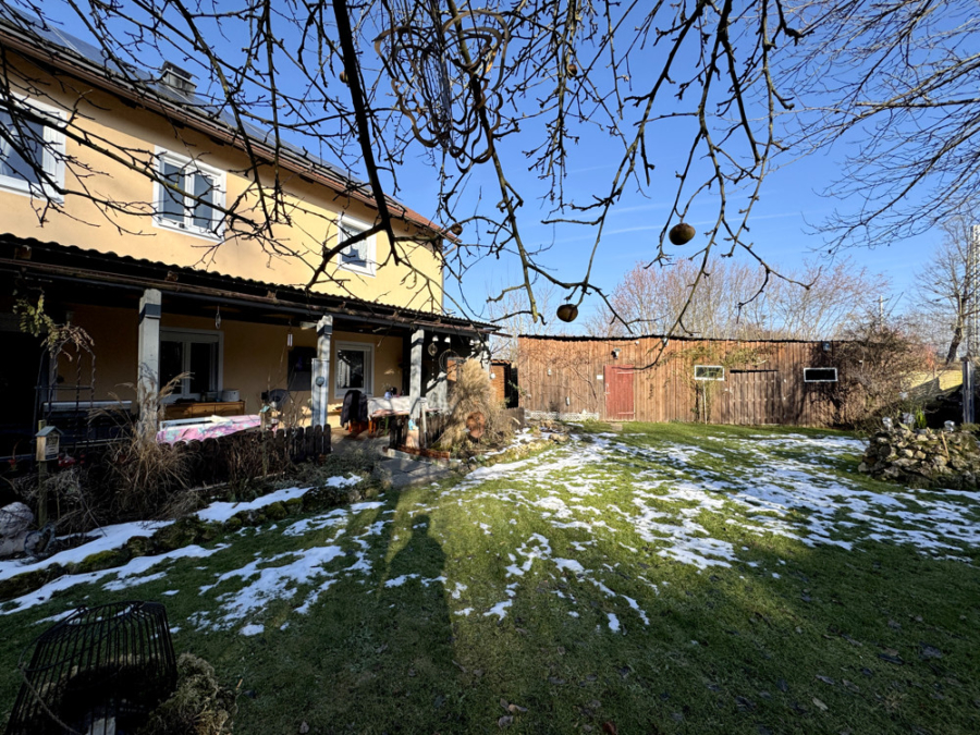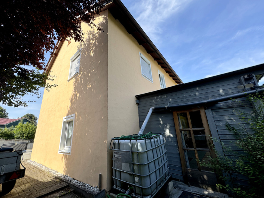Die große Terrasse lädt zu gemütlichen Grillabenden und entspannten Stunden im Freien ein. Ein geräumiger Schuppen im Garten bietet zudem viel Stauraum für Gartengeräte, Fahrräder und mehr.