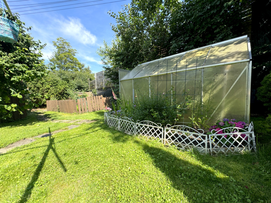Der Garten des Hauses ist ein wahres Paradies für Naturliebhaber. Dicht eingewachsen und pflegeleicht gestaltet, bietet er viel Platz zum Spielen, Entspannen und Gärtnern.