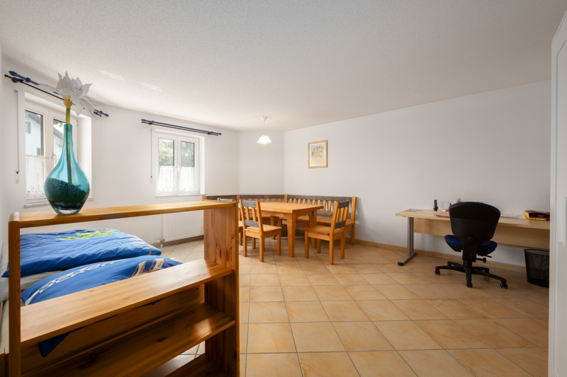 Praktisch ist ein Appartement mit eigener Küche und Dusche im Untergeschoss.