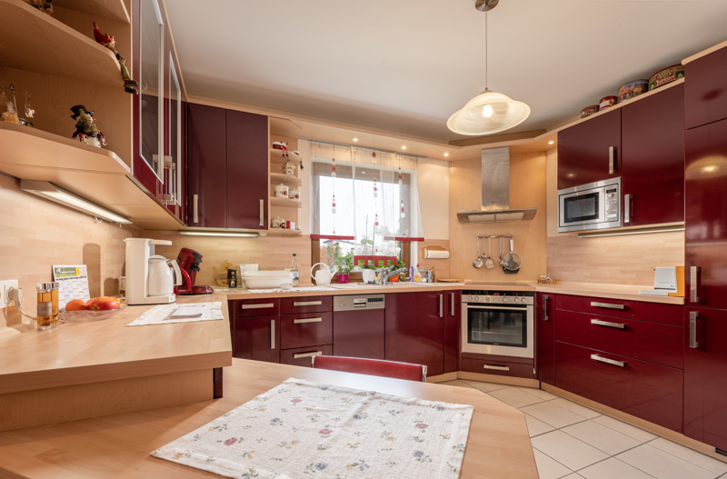 Die Küche ist voll ausgestattet und wird noch durch eine Speisekammer zusätzlich sehr gut ergänzt.