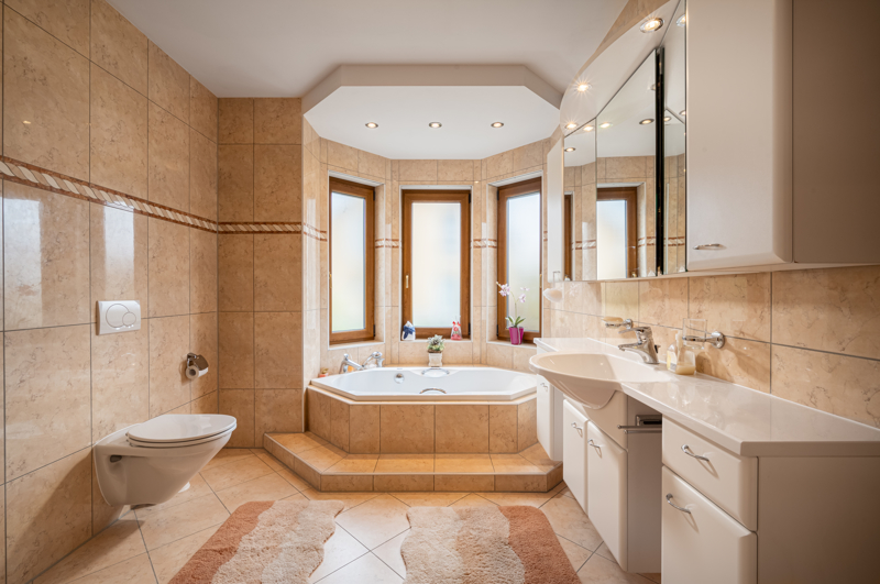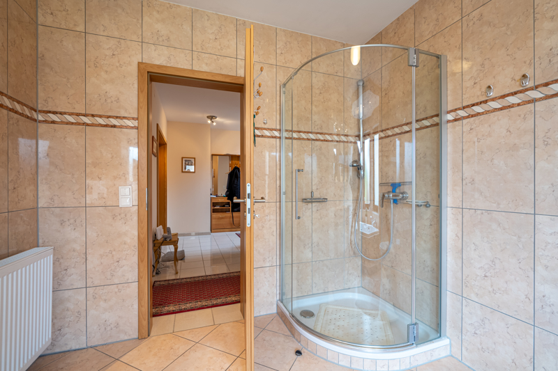 Wer auch im Badezimmer auf nichts verzichten will findet hier einen entspannten Ort mit einer Badewanne im Erker und einer separaten Dusche. Ein zusätzliches Gäste-WC ist ebenfalls vorhanden.