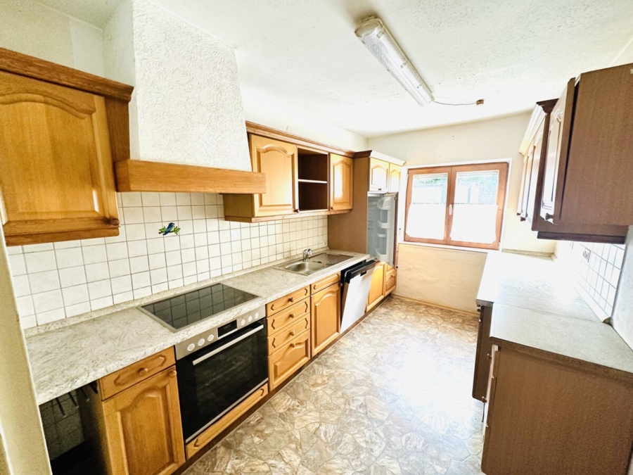 - Einbauküche mit neuen Geräten: Elektroherd, Kochplatte und Spülmaschine, im Jahr 2024 erneuert