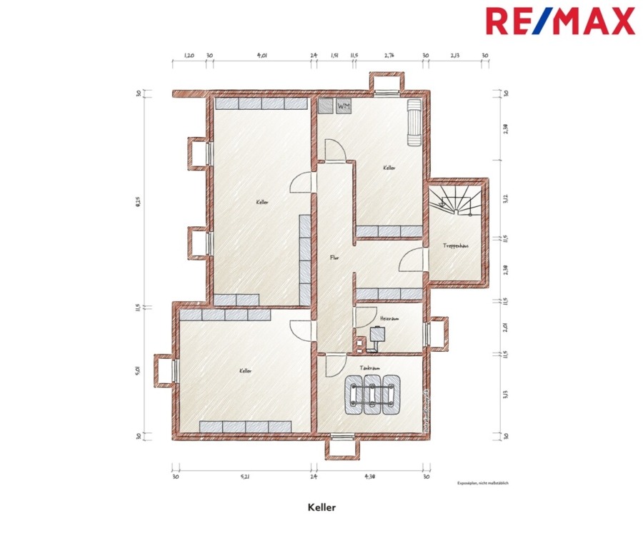 Im Untergeschoss befinden sich der Heizungsraum (Ölheizung), ein Waschraum sowie zwei weitere Kellerräume, die zusätzlichen Stauraum bieten.