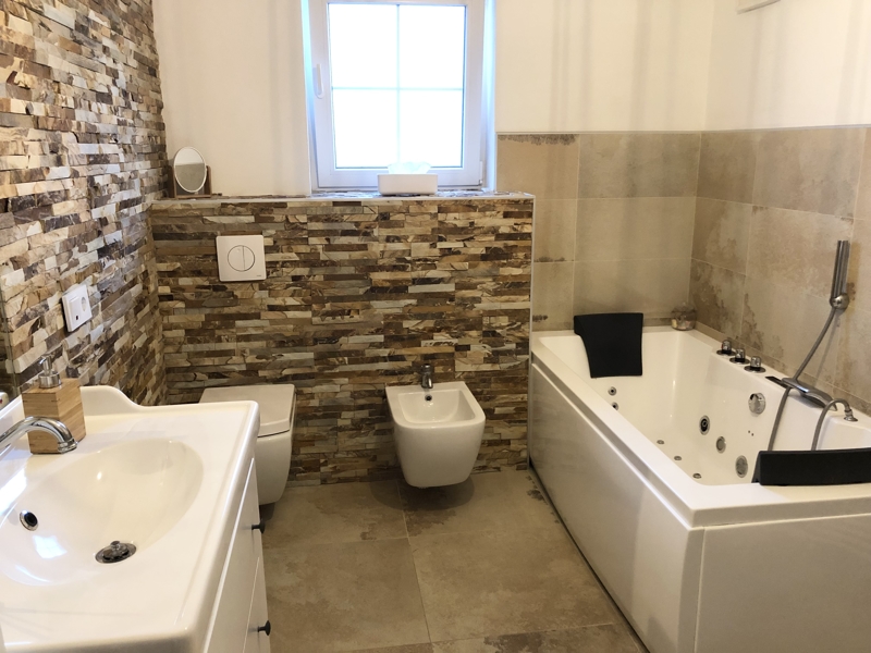 Im Dachgeschoss – mit ca. 66 m² erwartet Sie, ein Schlafzimmer, ein Kinderzimmer, ein Gästezimmer und das Badezimmer mit Whirlpool Badewanne, Dusche und WC.