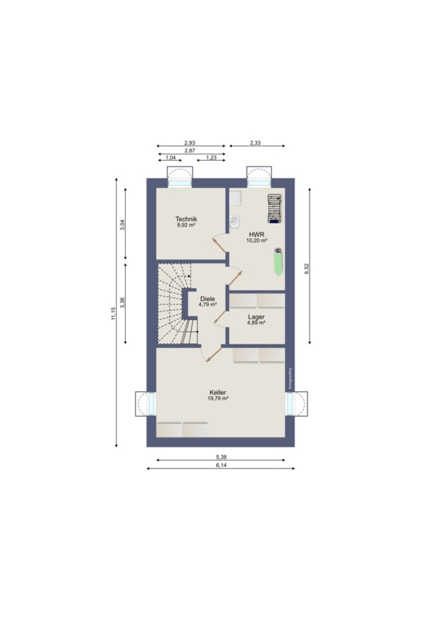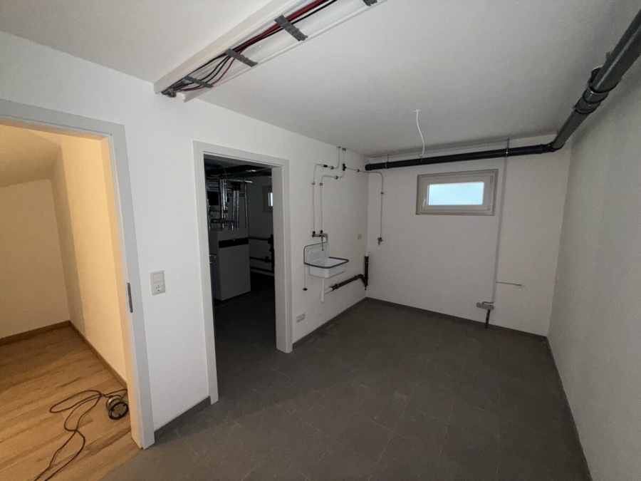 Ergänzt wird der Keller durch einen praktischen Hauswirtschaftsraum, der Platz für Waschmaschine, Trockner sowie weitere Haushaltsgeräte bietet und einem separaten Lagerraum.