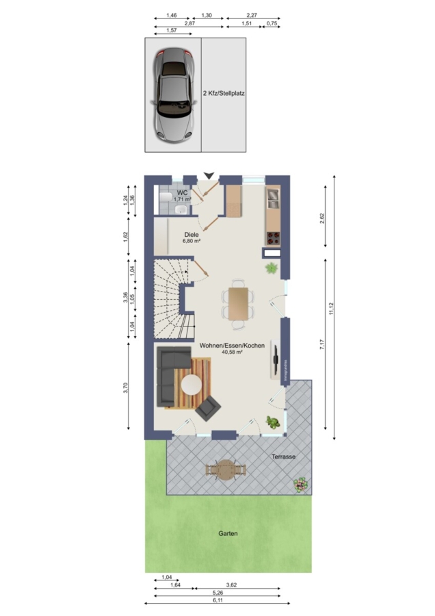 Für Ihre Kfz stehen Ihnen zwei Stellplätze vorm Haus zur Verfügung.