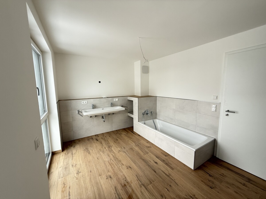 - moderne Badezimmer im OG und DG mit bodentiefer Dusche und Badewanne