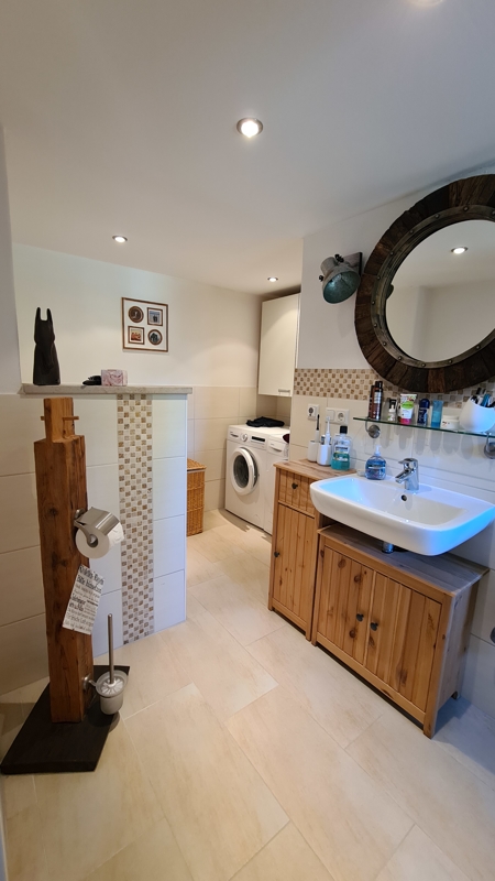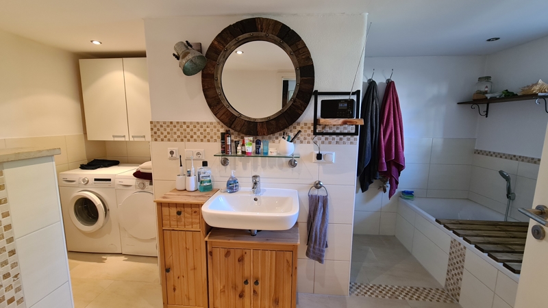 EG – Essen/ Kochen, Diele, Bad mit Badewanne u. Dusche u. Waschmaschinenanschluß