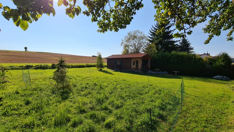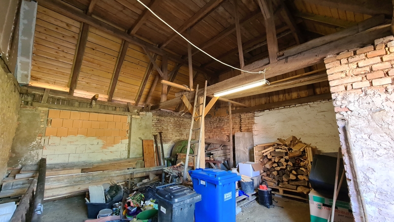 2 Garagen – angebaute Scheune – Gartenhaus – Pavillon – Hühnerstall mit Gehege – baufällige Scheune