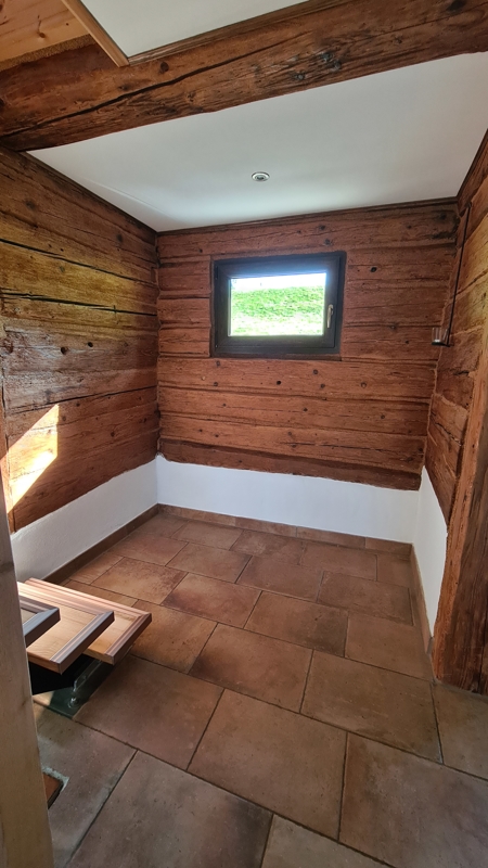 - Heizung in Form von Pelletseinzelöfen (im Bad elektr. Fußbodenheizung)