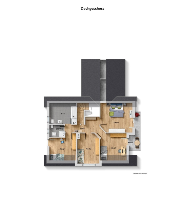 Einige Stufen hinauf führen Sie zu Ihrem überdachten Hauseingang. Im Erdgeschoss erwarten Sie Ihre Wohnküche, Ihr geräumiges Wohnzimmer, zwei weitere Räume – zum Arbeiten oder als Gästezimmer – sowie ein Bad mit Dusche.