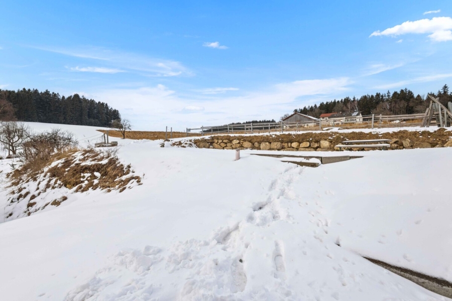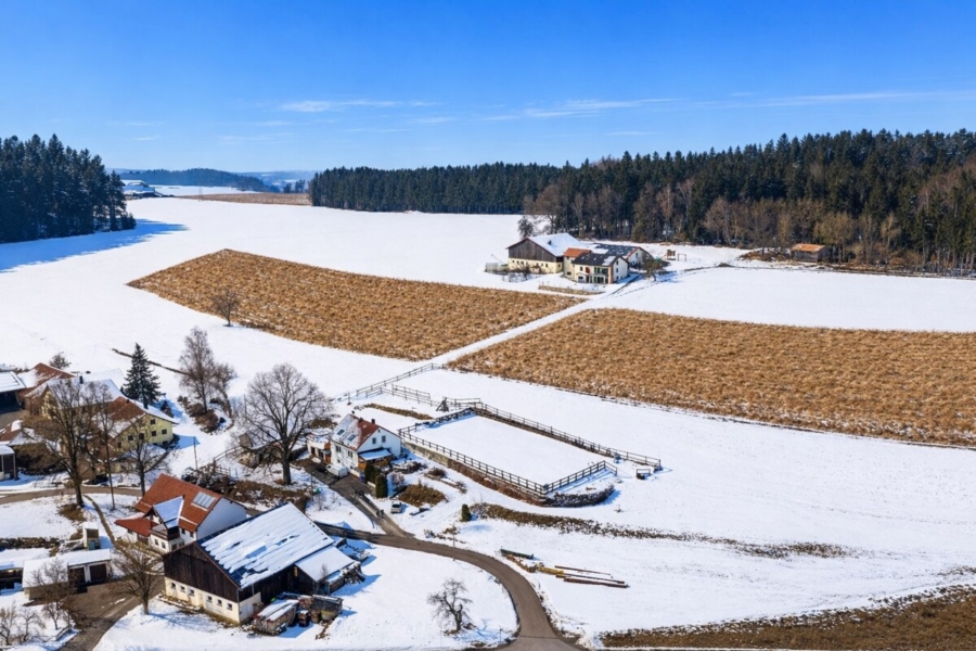 Inmitten der sanften Hügellandschaft der Oberpfalz, im Ortsteil Schwaighof der Gemeinde Michelsneukirchen, präsentiert sich dieses freistehende Einfamilienhaus als seltene Kombination aus großzügigem Grundstück, naturnahem Wohnen und pferdebezogenem Nutzungspotenzial.