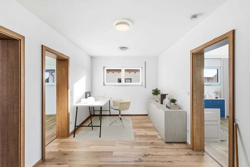 Die Galerie im Obergeschoss bietet zusätzlichen Raum, der sich hervorragend als Büro, Arbeits- oder Spielbereich eignet.