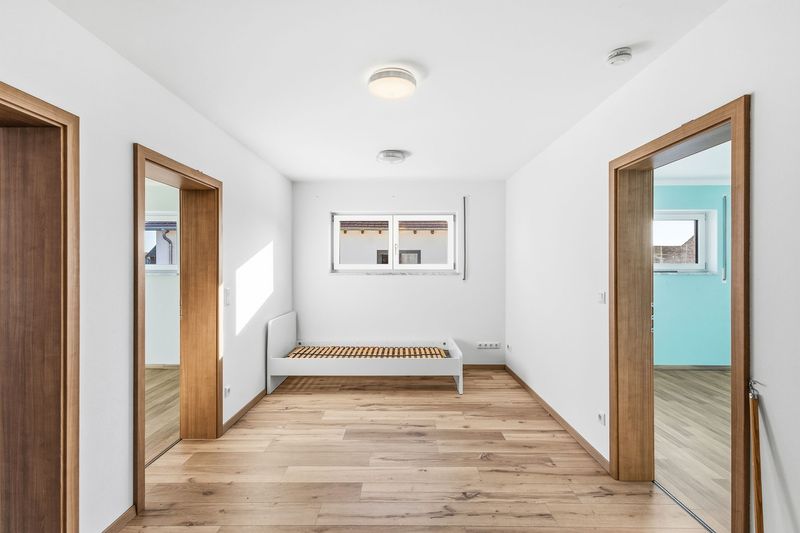 Direkt am Haus ist eine Haltestelle für den Kindergarten- und Schulbus, ideal für Familien. Auch die weiterführenden Schulen wie Realschule und das Gymnasium sind nahe in Neutraubling.
