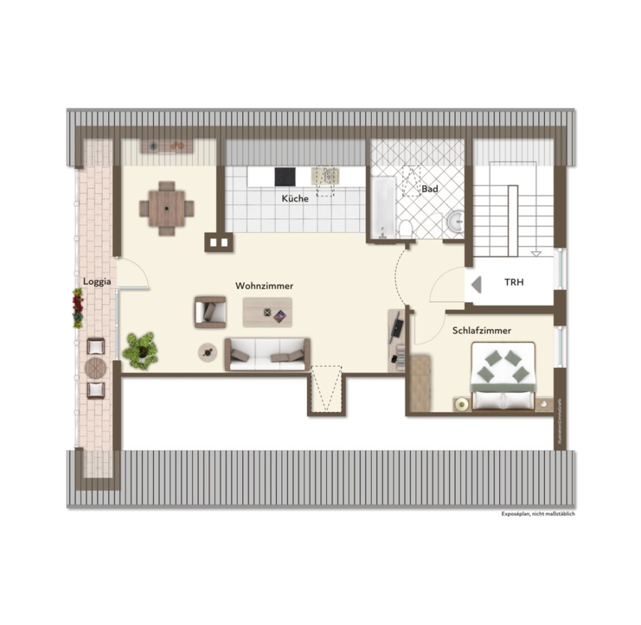 Dagegen atmen Ihre Wohnungen im Obergeschoss und im Dachgeschoss schon noch – mehr oder weniger – den zeitgenössischen Geist der späten siebziger respektive der frühen achtziger Jahre.