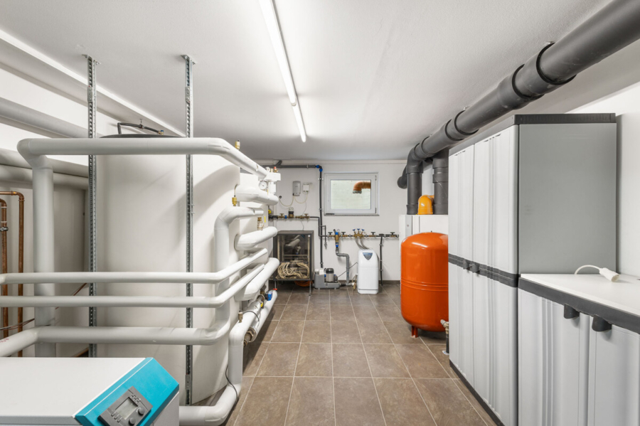 Ein Gasanschluss steht als alternative Heizquelle bereit, und die gesamte Immobilie wird durch eine zuverlässige Entkalkungsanlage auf Salzbasis geschützt.