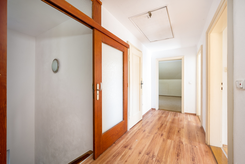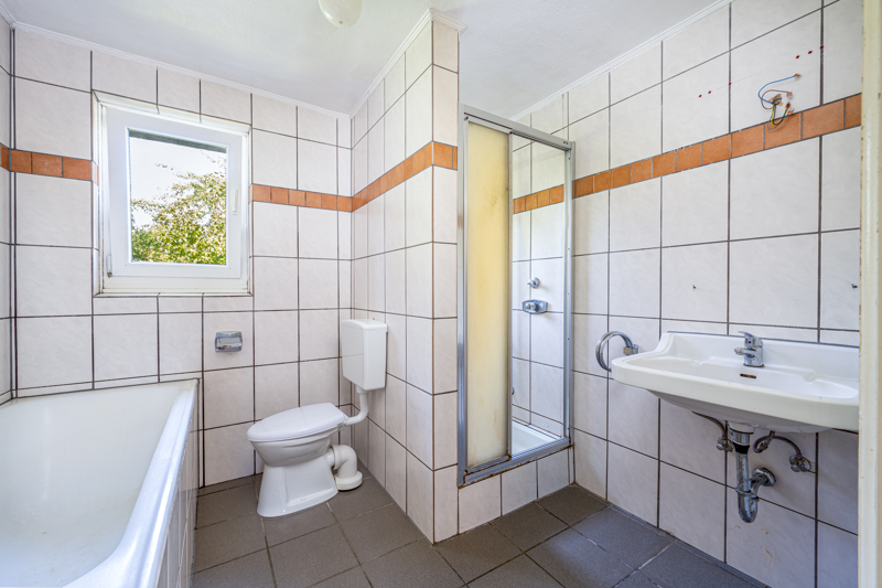 Das Einfamilienhaus ist gepflegt, das ältere Baujahr lässt sich aber in manchen Zimmern und vor allem den Bädern noch ablesen – hier könnte eine Renovierung erfolgen.