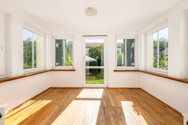 Ein großes Grundstück, Obstbäume und einen unverbaubaren Blick – all dies vereint dieses Einfamilienhaus in Nittenau. Sie betreten dieses Haus über einen Windfang, geradewegs gelangen Sie in den Flur. Rechter Hand finden Sie das erste Zimmer vor, welches als Büro, Gästezimmer oder Kinderzimmer fungieren kann. Daran schließt sich das großzügige Wohnzimmer samt Wintergarten an. Der beheizte und nach Süden ausgerichtete Wintergarten sorgt nicht nur für zusätzlichen Wohnraum, sondern bietet zudem einen Zugang in Ihren Garten.