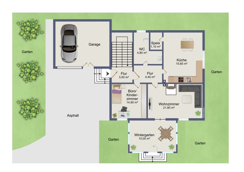 Das Erdgeschoss verfügt zusätzlich über ein Gäste-WC.