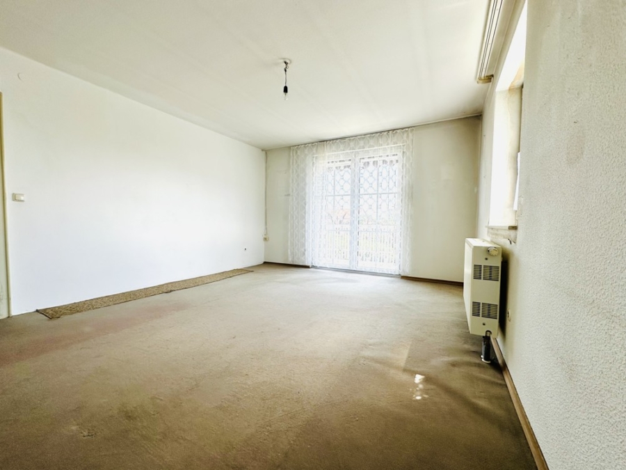 Das Wohnzimmer, durchflutet von Tageslicht, schafft einen Rückzugsort für die ganze Familie. Vom Wohnzimmer aus gelangen Sie direkt auf den Balkon, der einen schönen Blick in den Garten ermöglicht.