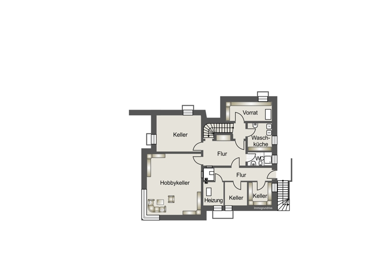 - voll unterkellert, Keller gefliest, Hobbyraum mit ebenerdigen Fenstern und Heizkörpern, Bad