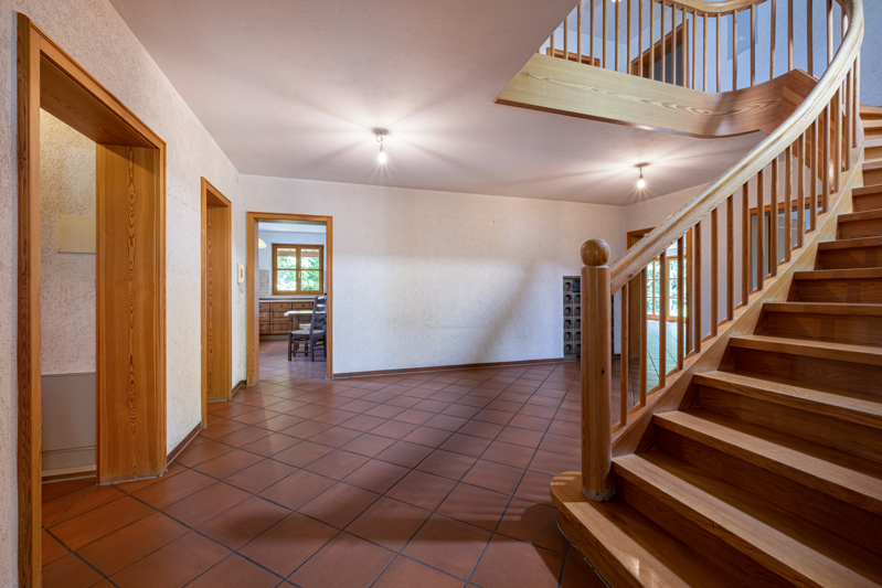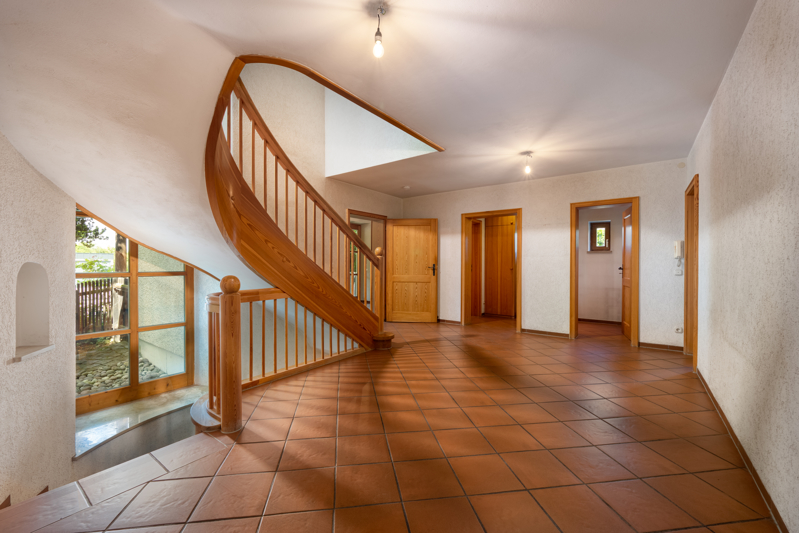 Das stilvolle Walmdachhaus empfängt Sie in der repräsentativen Eingangshalle und zeigt hier bereits sein Potential an Großzügigkeit.