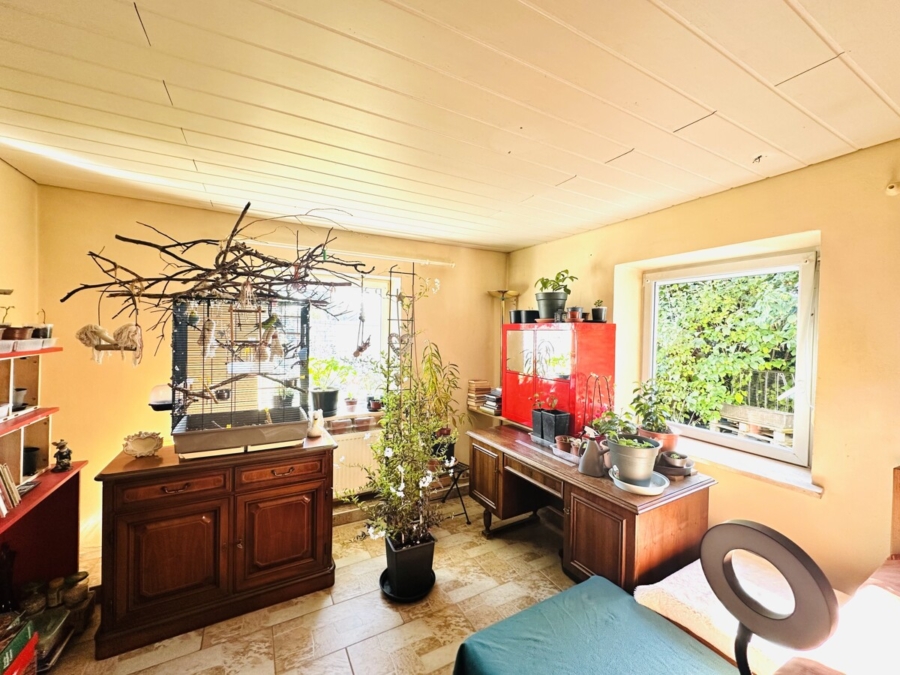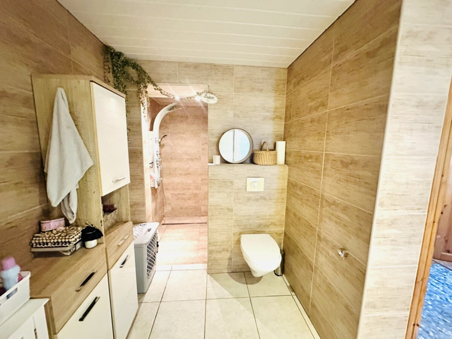 Das Haus verfügt über eine kleine, funktionale Teilunterkellerung unter der Treppe. Dieser Bereich wurde liebevoll zu einem kleinen Wellnessbereich mit Sauna umgestaltet und bietet so zusätzlichen Komfort.