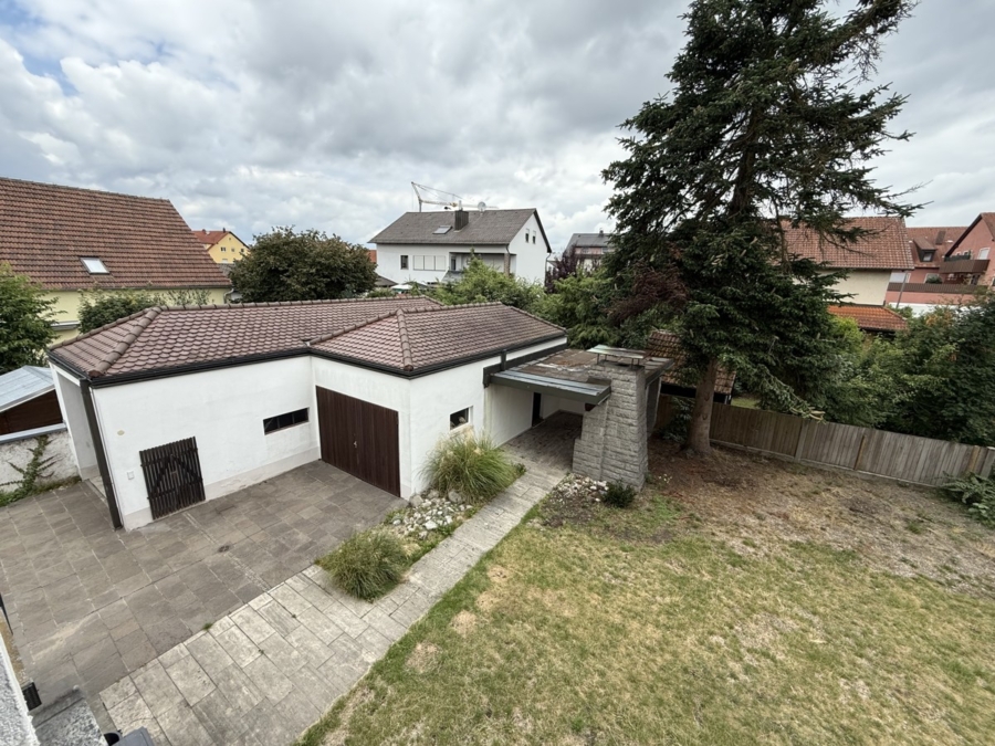 - 1968 erweitert um eine zweite Garage, überdachter Freisitz mit offenem Kamin