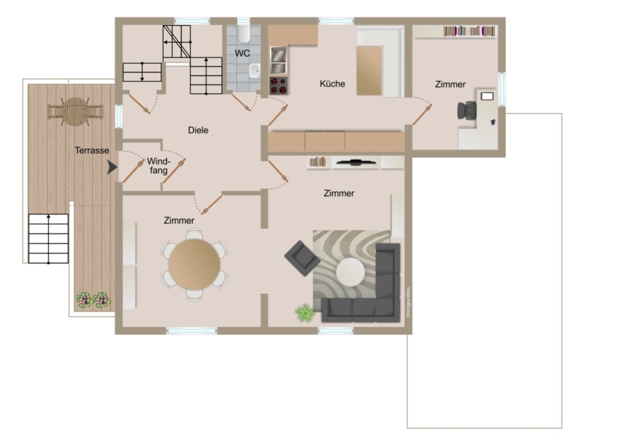 Das ganze Anwesen präsentiert sich gepflegt und mit überschaubaren Modernisierungsmaßnahmen haben Sie ein zeitlos stilvolles Domizil für Ihre Familie.