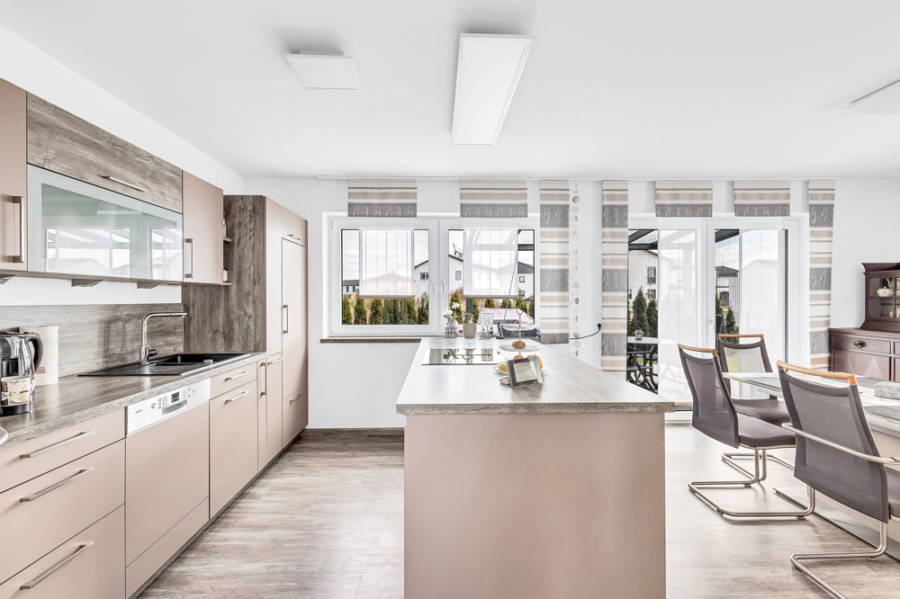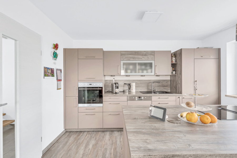 Schon beim Betreten wird deutlich: Dieses Zuhause wurde mit viel Geschmack und Blick für Details geplant. Eine offen gestaltete Wohnküche, hochwertige Materialien und eine helle Raumwirkung schaffen ein modernes Wohnambiente, das sofort ein Gefühl von Ankommen vermittelt.