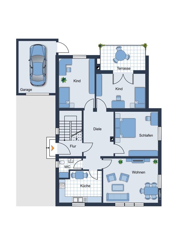 Man merkt das hier die Eigentümer die Immobilie selbst bewohnt haben. Es handelt sich um ein sehr gepflegtes Haus. Ein großer Garten mit großen Bäumen lädt nach einem stressigen Arbeitstag zum Erholen ein.