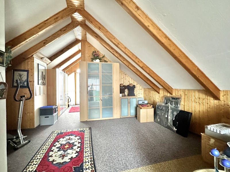 Das Dachgeschoss ist zur Logia ausgebaut. Es besteht jedoch die Möglichkeit, zwei Zimmer zu schaffen. Alle Leitungen für eine Küche und Dusche sind gegeben, sodass man das Dachgeschoss nach eigenen Wünschen und Vorstellungen gestalten kann. Außerdem gibt es einen Balkon mit einem atemberaubenden Blick auf die Umgebung.