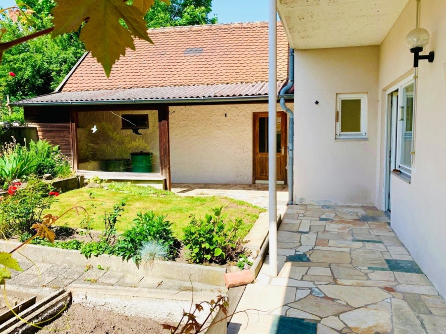 Der gepflegte Garten mit Rasenfläche und Sträuchern lädt zum Entspannen und Spielen ein. Eine Garage rundet das Angebot ab.