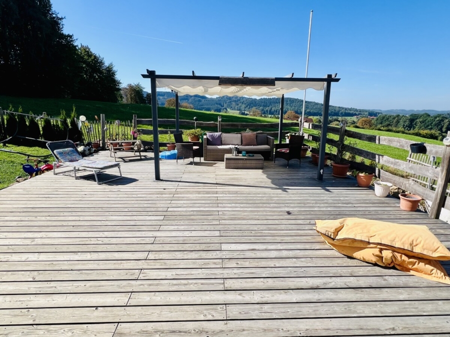 • Sonnige Terrasse mit ca. 40 m² und traumhaftem Weitblick