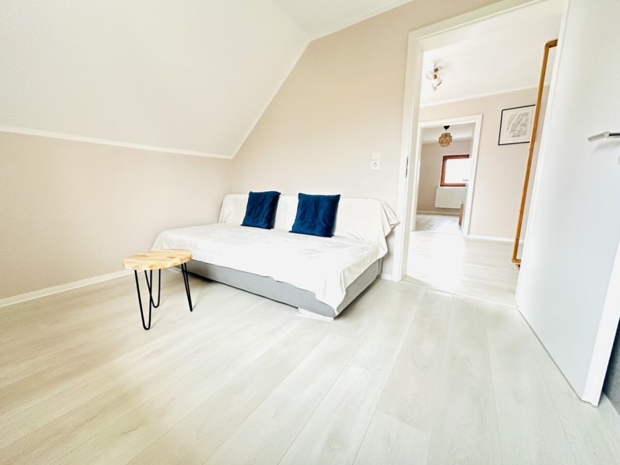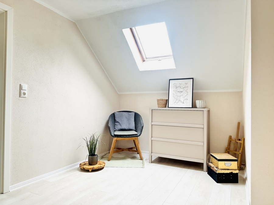 Im Dachgeschoss stehen Ihnen drei gut geschnittene Schlafzimmer sowie ein zweites Badezimmer zur Verfügung. Zwei der Räume eignen sich hervorragend als Kinderzimmer. Ein zusätzlicher, direkt an eines der Schlafzimmer angrenzender Raum bietet sich perfekt als Homeoffice oder Ankleidezimmer an. Trotz fehlendem Keller ist dank des großzügigen Dachbodenbereichs, der direkt vom Obergeschoss erreichbar ist, reichlich Stauraum vorhanden.
