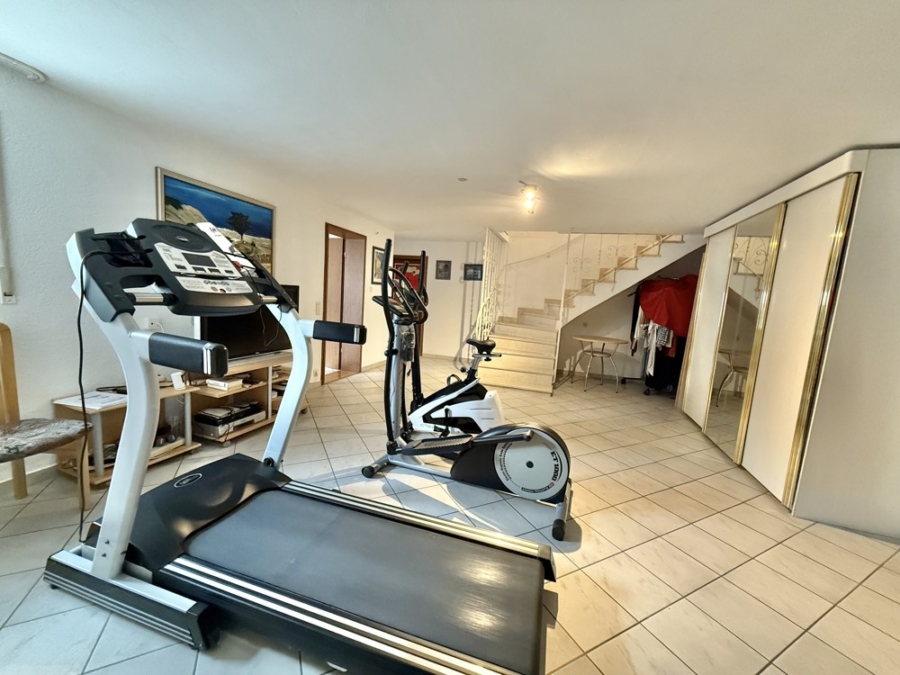 - Vorraum: Geräumiger Eingangsbereich, der derzeit als Fitnessbereich genutzt wird.